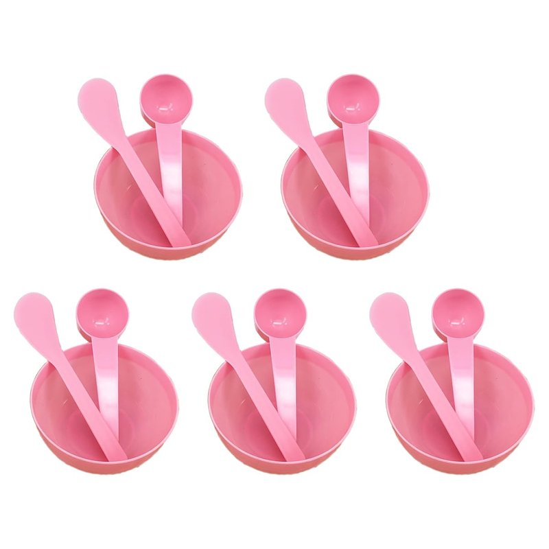 5 Sets Facial Mask Mixing Bowl with Spatula & Measuring Spoon Facemask Bowl Mud Mask Mixing Bowl DIY Skin Care Mixing Tool Kit for Lady Women Home Beauty Salon Use, Pink