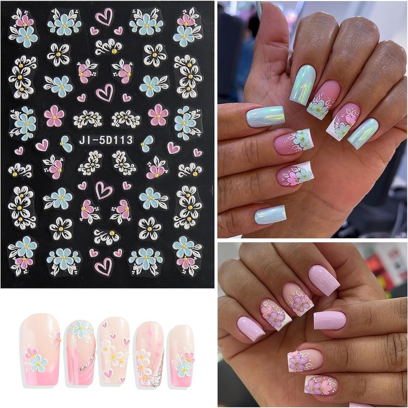 - 【Safety Material】: 5D floral nail decals are made of environmentally friendly materials,no damage to fingernails, any style of nails can use, perfect for home use and nail salon.