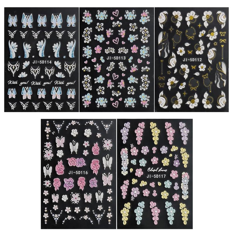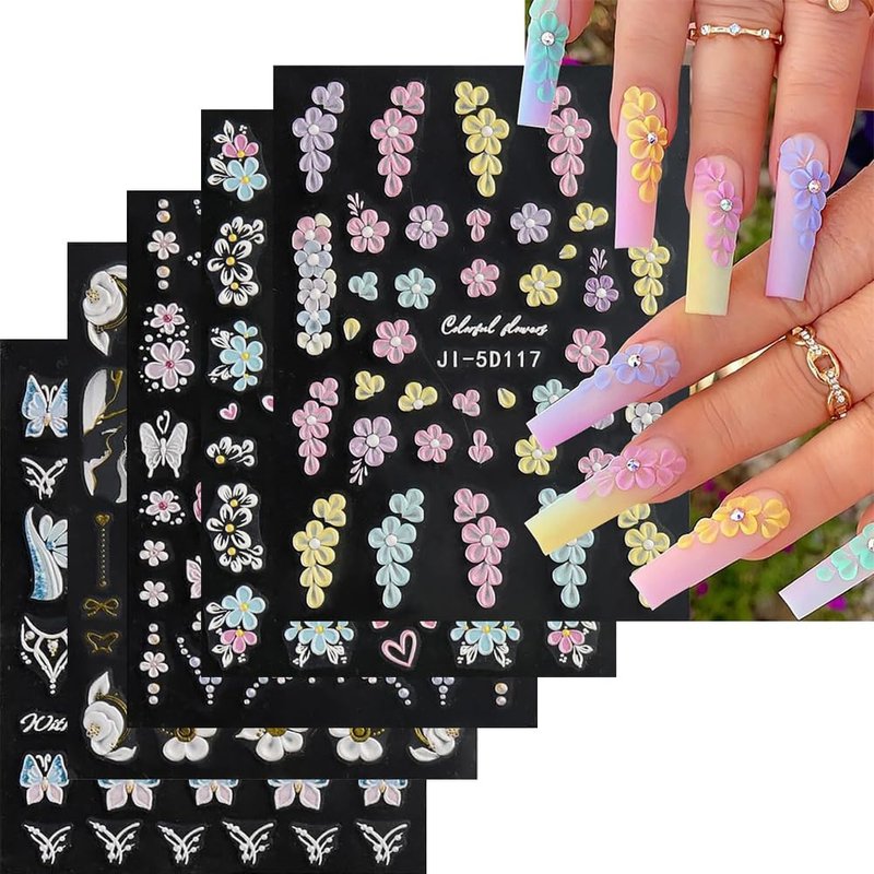 5D Flower Nail Stickers Colorful Floral Design Nail Art Decals for Women Manicure Decorations Set