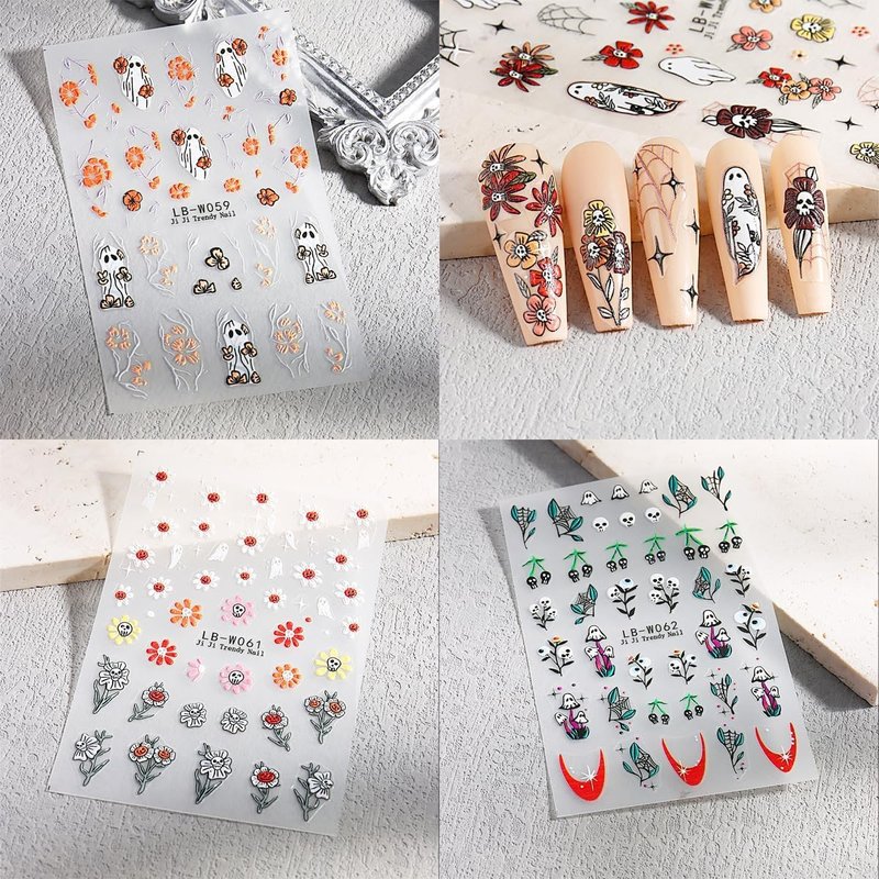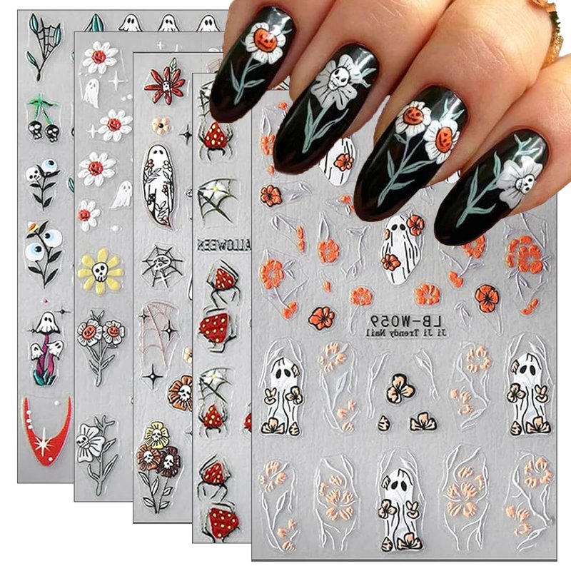 5 Sheets Halloween Nail Stickers 5D self Adhesi...
