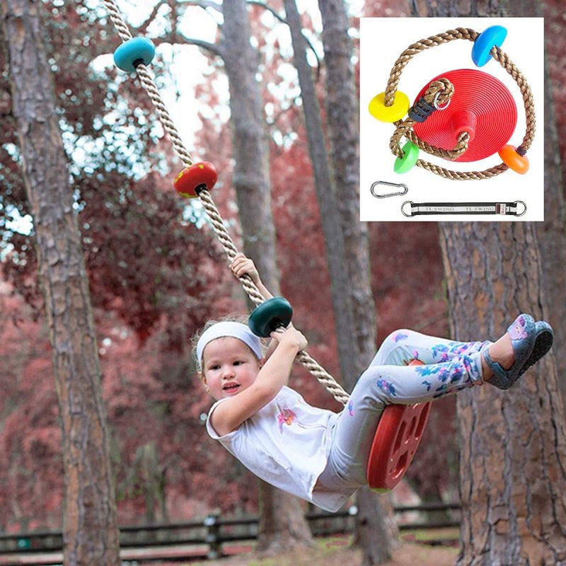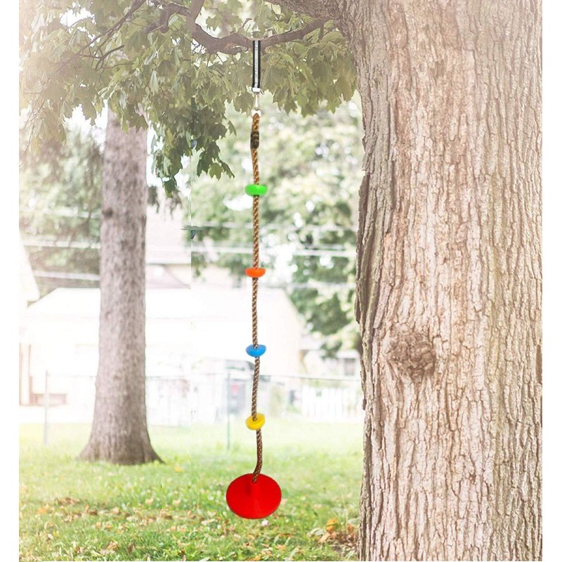 - [Keep the Kids Active] The Ultimate New Ultra Disc Swing Seat Platform Complete Set, with a Heavy Duty Strong Multi Colored Climbing Rope, that's soft and gentle on the hands, helps your Kids build core muscles, and excellent for full body strength training!