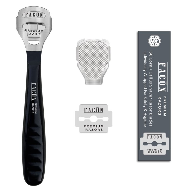 50 Blades + Facón Professional Pedicure Callus Shaver Remover - Premium Salon Quality Surgical Grade Stainless Steel - Removes Calluses, Corns & Rough Skin