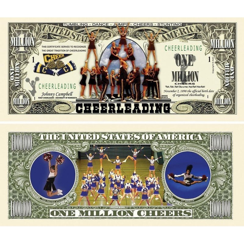 50 Cheerleading Million Dollar Bills with Bonus “Thanks a Million” Gift Card Set