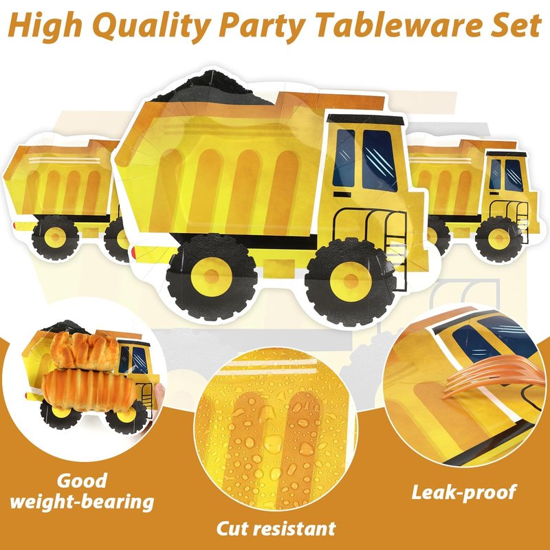 - Assurance material: the construction dinnerware plates are made of thick and durable paper that won't fold when carrying food, no smell and heavy-duty, you'll be able to serve many of your favorite delicious party treats.