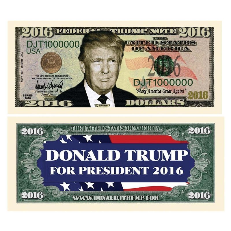 50 Donald Trump 2016 Presidential Dollar Bills with Bonus “Thanks a Million” Gift Card Set