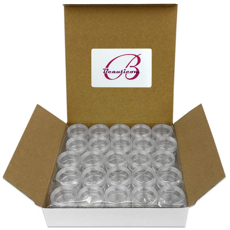 - Beauticom 5g and 5mL sample jars with colorful lids are made of high grade plastic and PP, ABS. Round jars are corrosion-resistant. Durable and beautiful to use, non-toxic and environmental protection. Easy to clean re-use and recycle. Due to the good sealing of these round jars it can isolate the secondary pollution of cosmetics. Suitable for everyone to use!