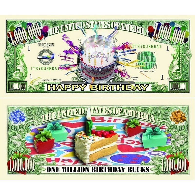 50 Happy Birthday Million Dollar Bills with Bonus “Thanks a Million” Gift Card Set