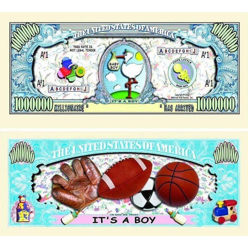 50 It's A Boy Million Dollar Baby Bills with Bonus “Thanks a Million” Gift Card Set