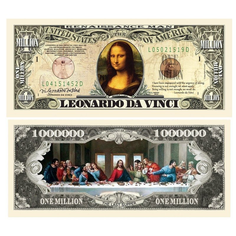 50 Leonardo Da Vinci Million Dollar Bill with Bonus “Thanks a Million” Gift Card Set
