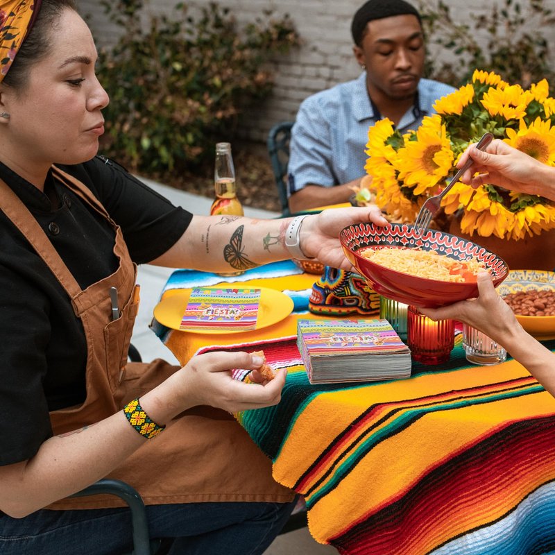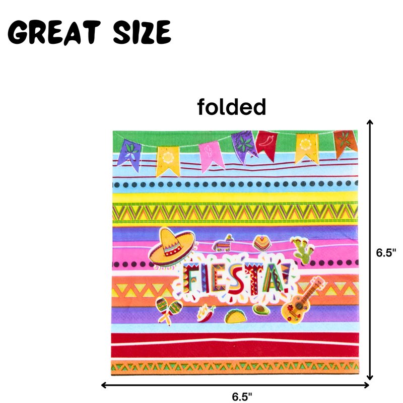 - Convenient: Our Mexican Fiesta Napkins are disposable, which means you won't have to worry about cleaning up after your party. Simply throw them away when you're done, and you'll be left with a clean table and no mess to deal with. Co complete your table decorating supplies you can add a plastic tablecloth, fiesta plates, cups, cutlery, centerpieces,