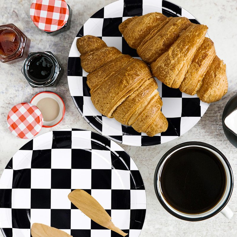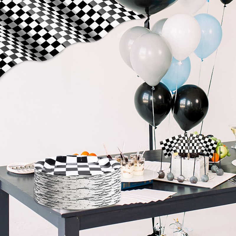 - Checkered Flag Design: Our paper plates are designed with racing car checkered flags, which are novel and unique, and will be a great table decoration. Elegant black and white colors show simplicity and modern beauty, going well with modern and minimalist tables.