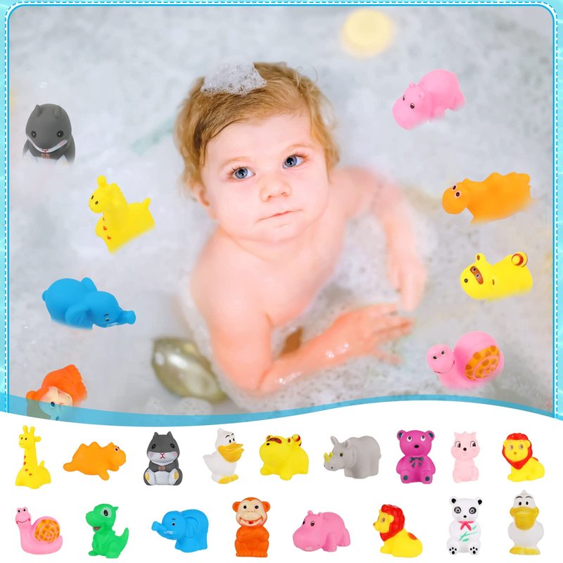 50 Pcs Baby Bath Toys Bulk Infant Bath Toys Water Float Squeak Rubber Animal Toys Bathtub Pool Toy for Toddlers Kids Bath Time Shower Party Favors Birthday Gifts, Random Style(Jungle Style)