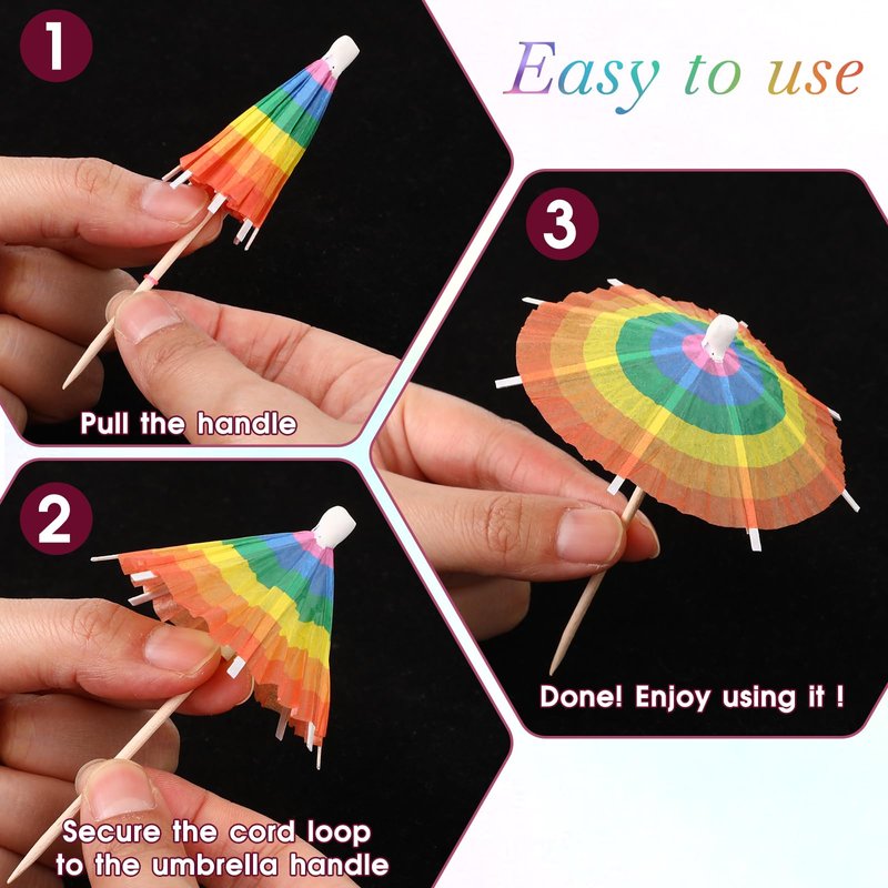- š¹ćMulti-purpose Useć: Mini paper umbrella decorations can be used as pretty decorations for many desserts, fruits, drinks and cocktails! Also great as cupcake toppers, craft projects, or other festive occasions.