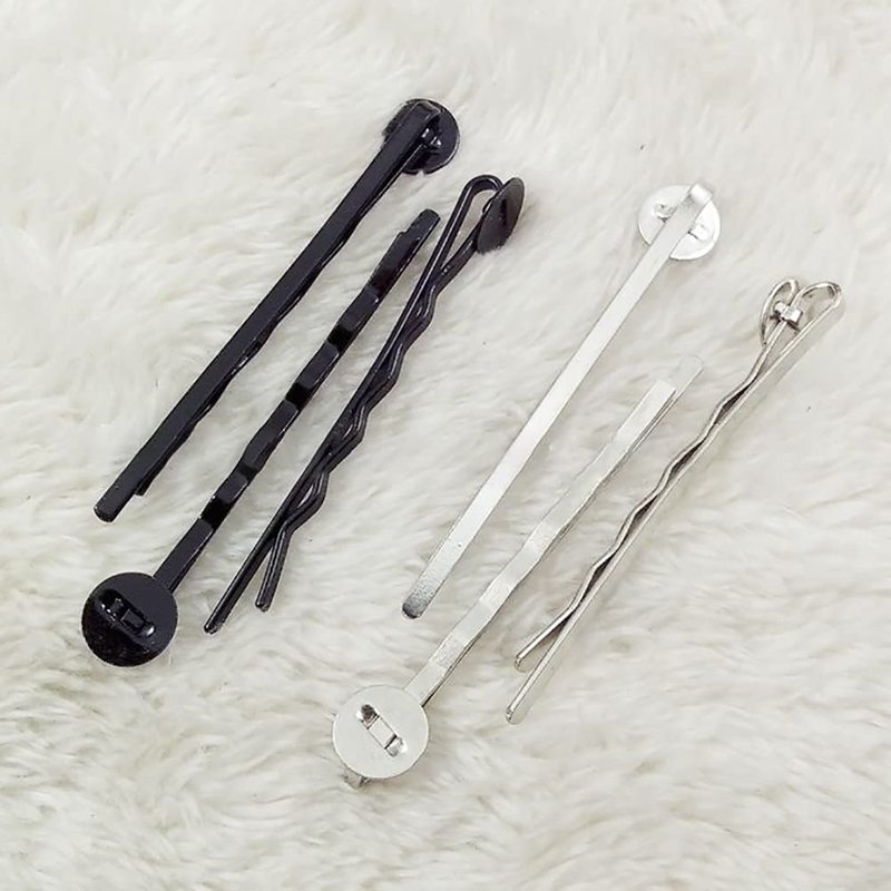 50 Pcs Hair Bobby Pins Hair Clips with Blank Round Tray Hair Pins Hairpin Cabochons Bases for DIY Crafts Silver