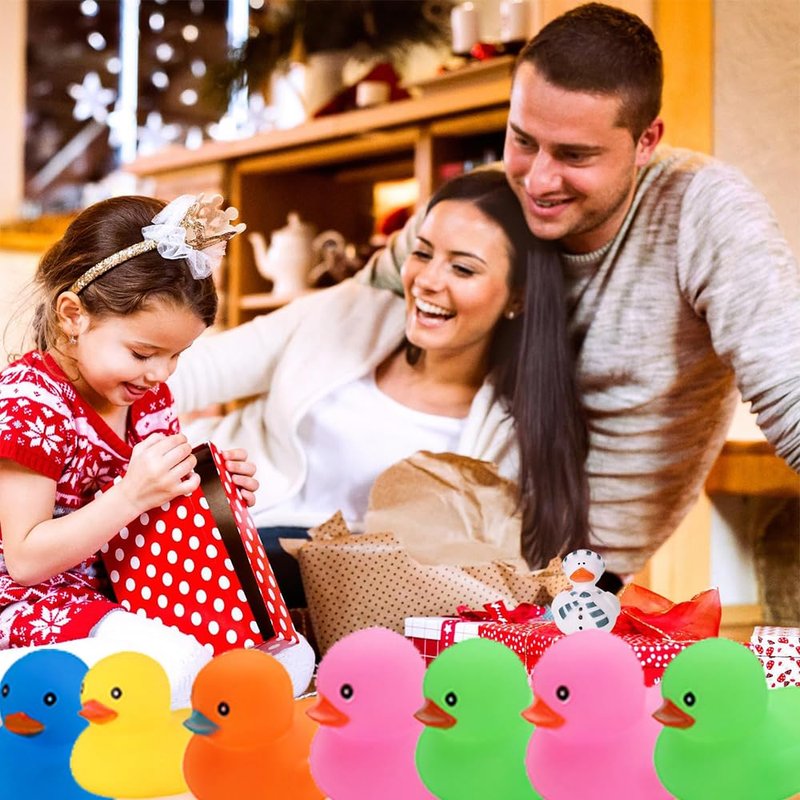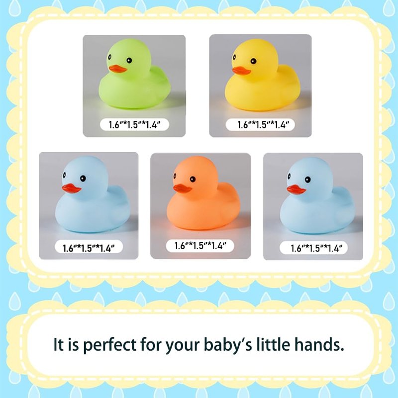 - 【50pcs Cute Colored Duckies】 You will get 50pcs Multicolor tiny rubber ducks of the same size:1.6"L x 1.5"W x 1.5"H.There are 10 pink ,10 blue,10 orange,10 green and 10 yellow ducks.It is perfect for your baby's little hands and kids will love them very much !