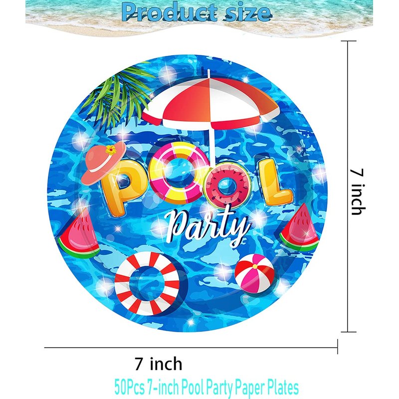- 【Pool Party Package Includes】You will receive 50 7-inch pool party paper plates,the plates printed with: pool party.super cute for beach party birthday party decorations,each set can accommodate 50 people guest.