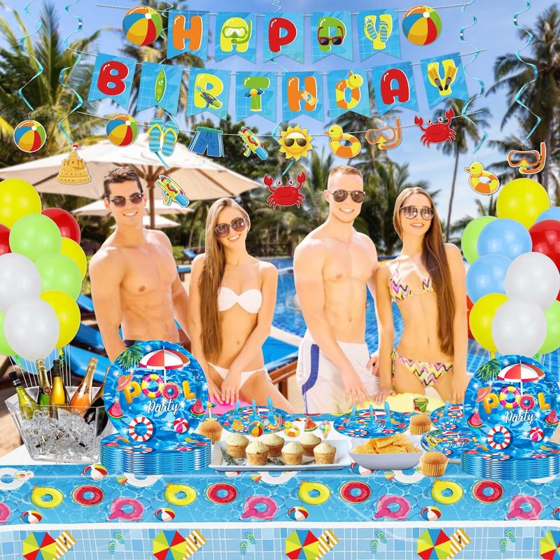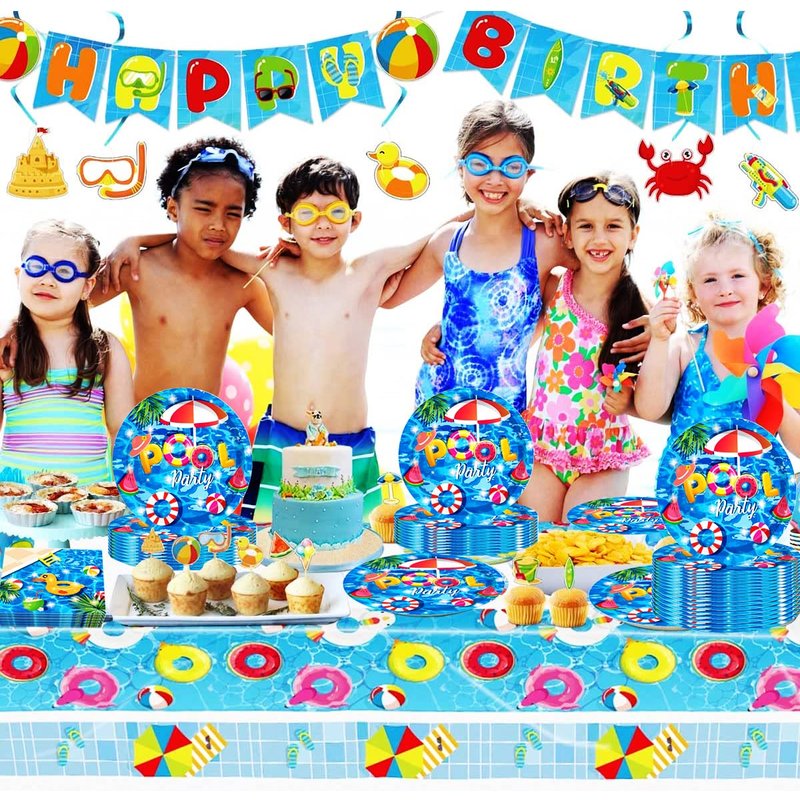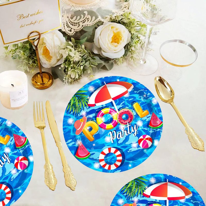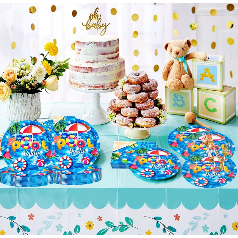 - 【Perfect Pool Party Decorations】This party supplies pack is designed to blue background pool party pattern. Adding an elegant, fancy touch to any party. Feel free to contact us if the products don't meet your expectations.