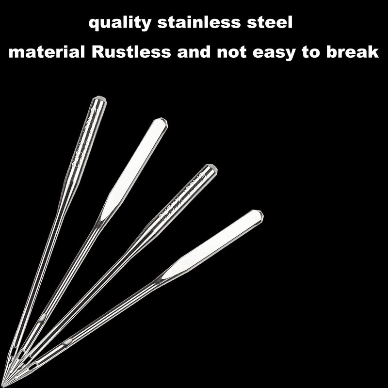 - Great Design: The sewing Needles shank one side is flat and one side is semicircle, has an enlarge eye and large grooves to accommodate top stitch thread. A sharp needle can helps you stitch perfectly straight lines and even stitches, and work very smoothly.