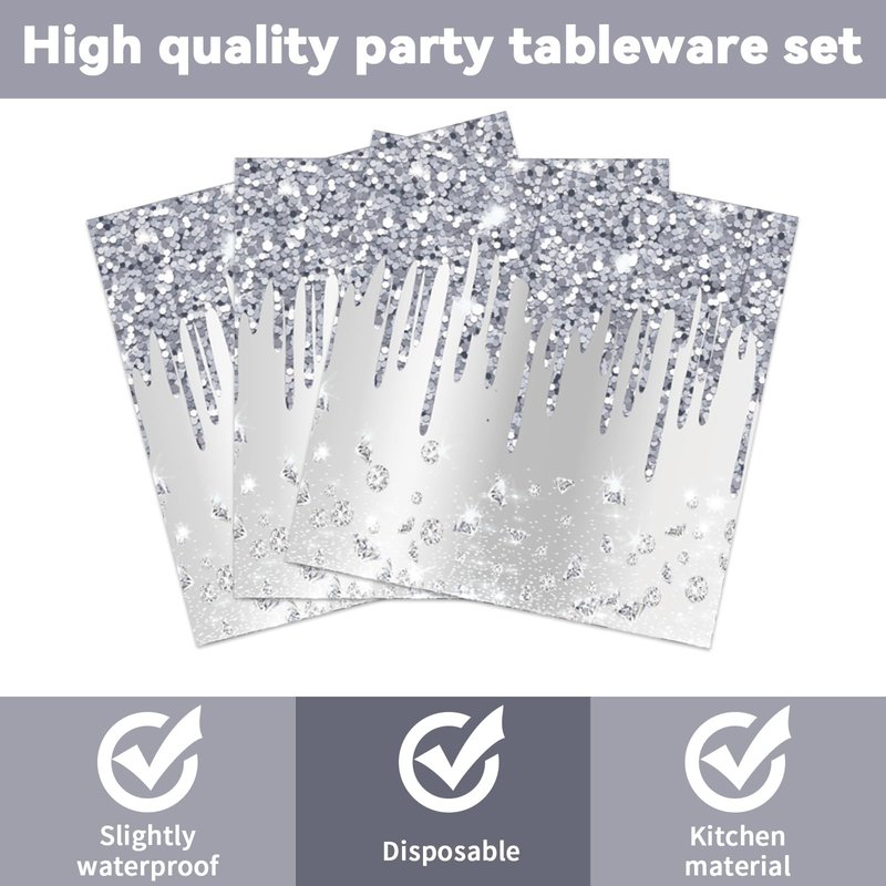 Spice up your parties with our glitter diamonds silver themed birthday party decorations, which are not only practical but also use sparkling prints and they will be the spotlight on your celebrations, adding a dreamy atmosphere to your events.