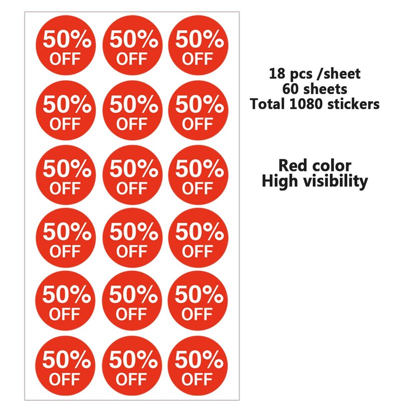 50 Percent Off Stickers,Price Stickers for Retail Store 3/4 Inch,1080 Adhesive Labels