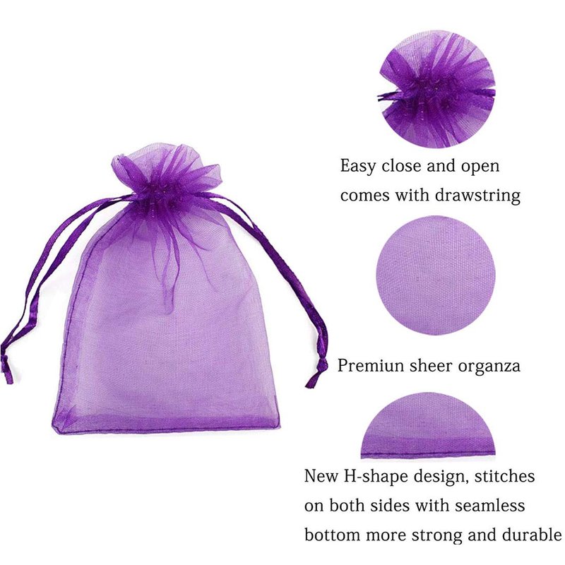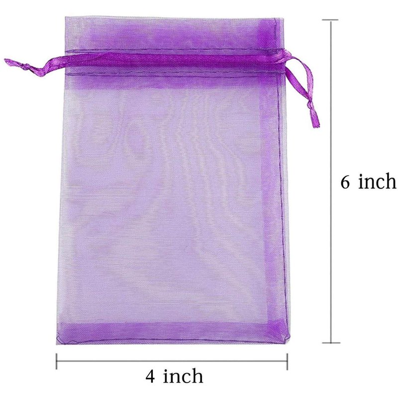 - Size: 4x6 inches, about 10cm wide, 15cm long; 50 pcs per pack purple gift wrapping bags; material: transparent organza satin ribbon