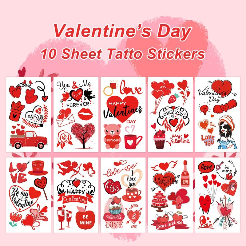 10 Sheets Valentine Tattoo Stickers Body Art Fake Tattoos Waterproof Sticker Decals for Girls Women Festival Decoration