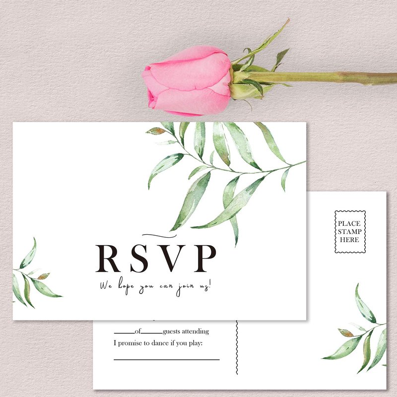50 RSVP Postcards, Rsvp Cards for Wedding, Bridal Shower, Baby Shower, Greenery RSVP Response Cards, 4 x 6 Inches.