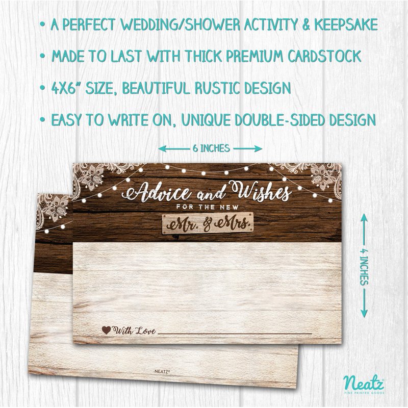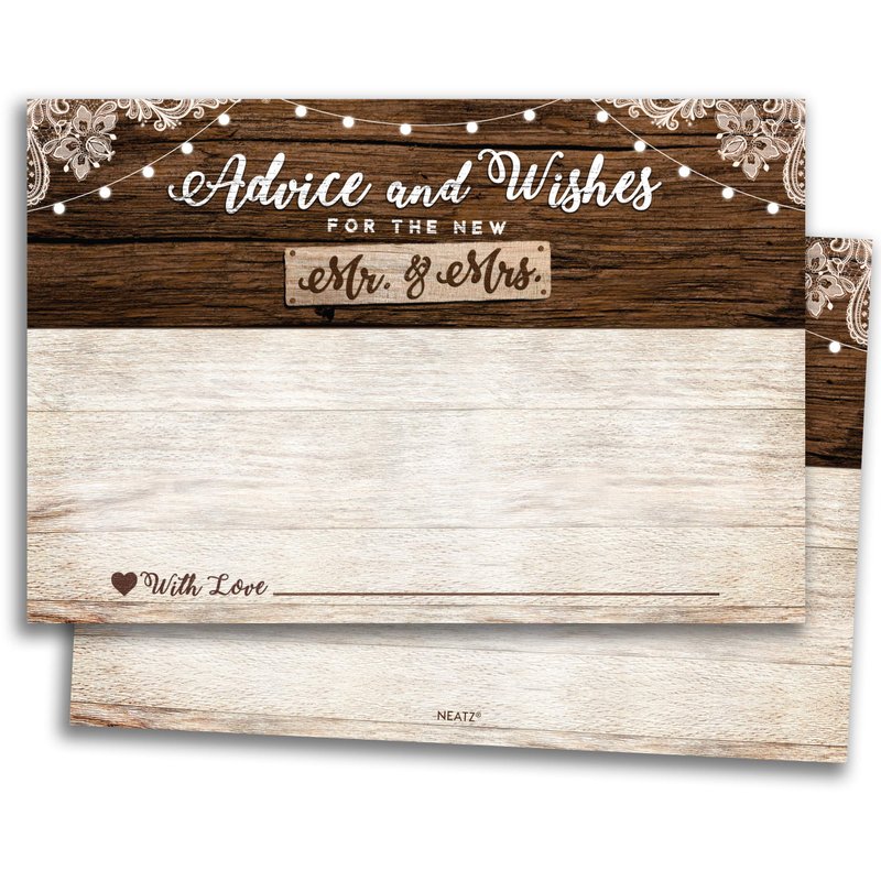 50 Rustic Wedding Advice Cards & Well Wishes for the Bride and Groom - Bridal Shower Games, Wedding Decorations, Rustic Wedding Decorations, Bridal Shower Decorations
