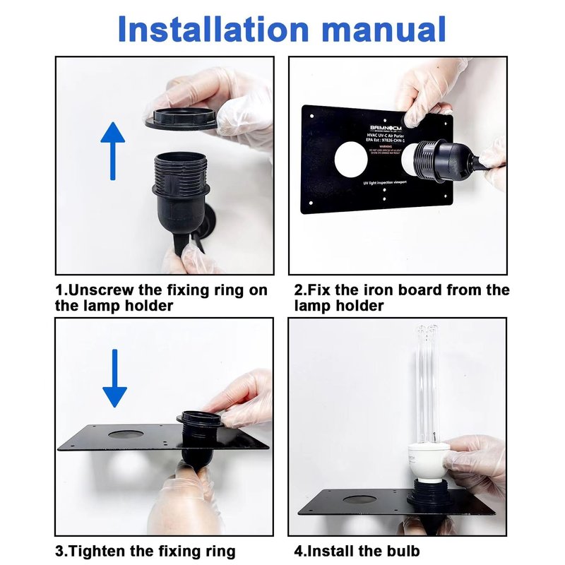 - 【 Installation】Installation is easy 15 min or less, just cut 2 holes in your duct-work (template included), slip the lamp inside and and plug it in 6 ft cord