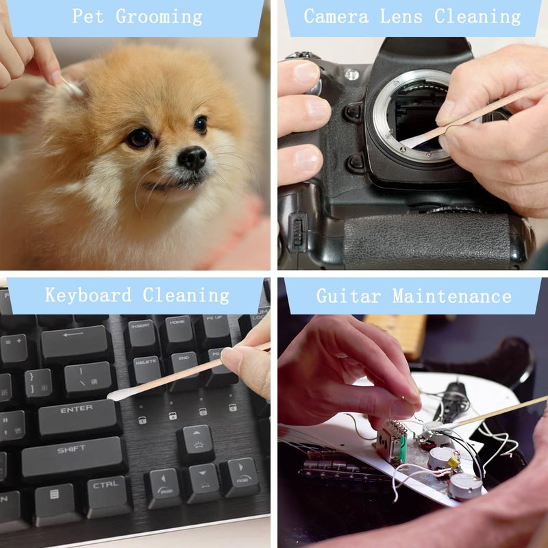 - 6 inch extra long cotton swab : long reach to clean hard to reach places, tight spots and small areas, great for cleaning cats & dogs ears, gun cleaning, household & electronics cleaning, painting arts & crafts