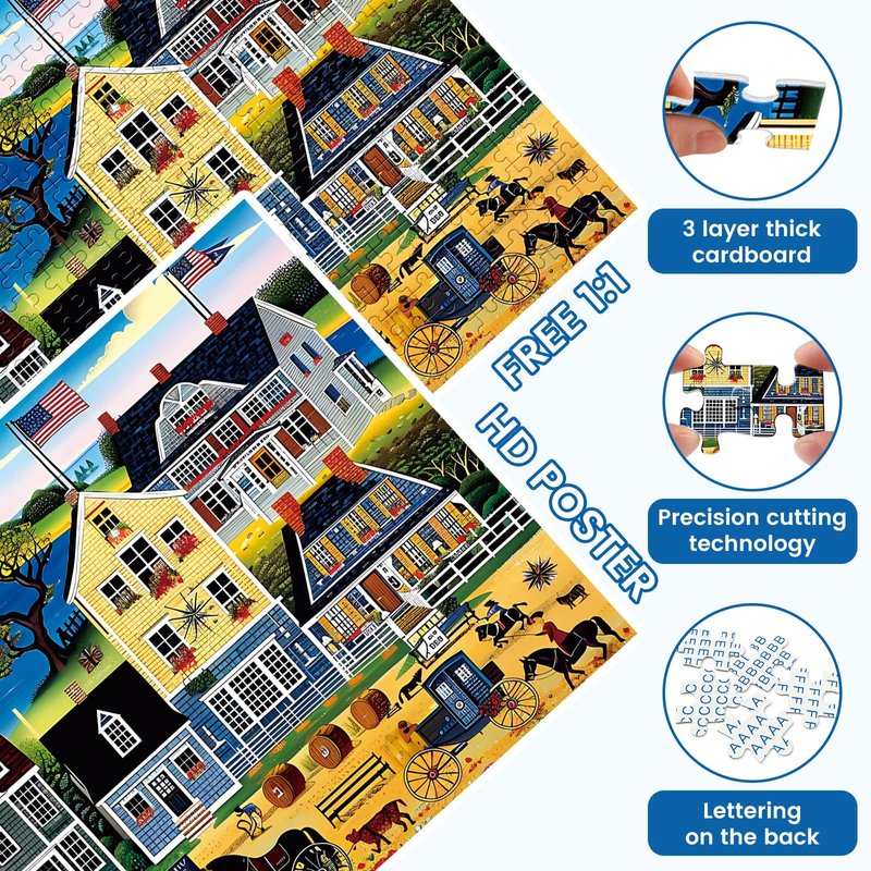 - [Fall Puzzle]: The puzzle depicts the bounty of fall in wagon age America, with harvested fields of golden wheat overflowing with the scent of autumn. For those who love the Autumn and harvest, this puzzles for adults 500 pieces is the perfect choice