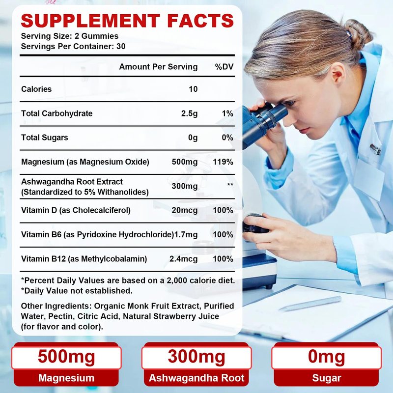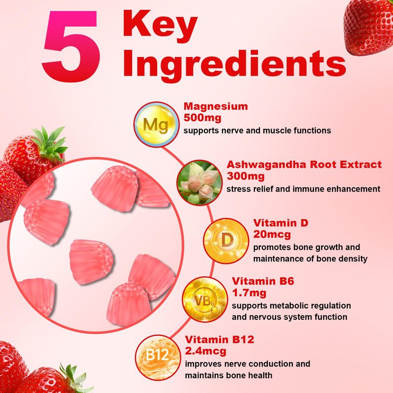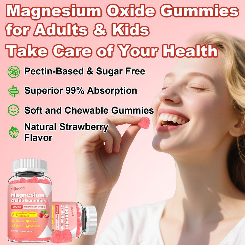 500mg Magnesium Oxide Gummies for Adults & Kids - Sugar Free Magnesium Gummies Supplement for Nerve, Bone & Muscle Support, Vegan, Non-GMO, Strawberry Flavor, 120 Count