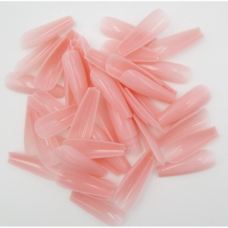 - 500pc coffin shapes long ballerina nude color press on nails full cover 10 size, 50pc/ size.