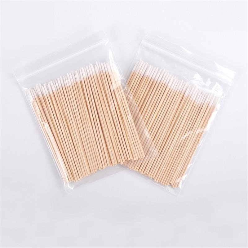- Cotton tipped applicators have compacted tips, with less lint than regular swabs, can work well for both cleaning and smearing.Wooden cotton swabs don't bend as easily and they let you scrub out those hard to reach places.Suitable for sensitive skin.