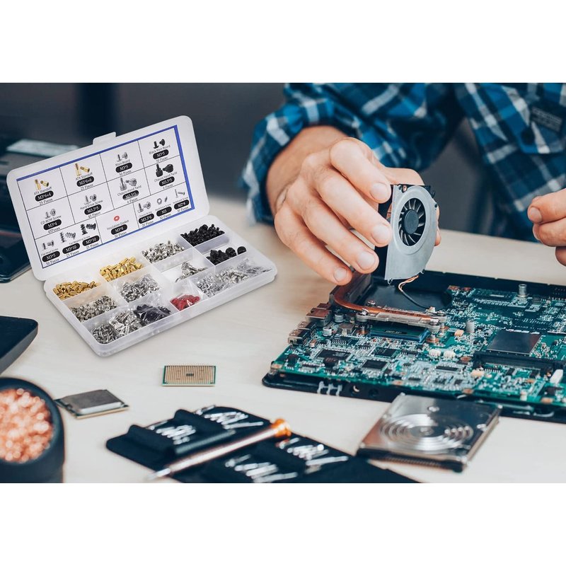 - Well Packaging. Each type of screws was placed inside a compartment and clearly labeled, making it easy for you to use and store at any time. The 4502pcs pc computer screws kit contains a variety & color of motherboard screws to help you find the right one for the pc mounting & repair needs. It's a good choice for the professional computer repairman or a first-time builder/fixer.