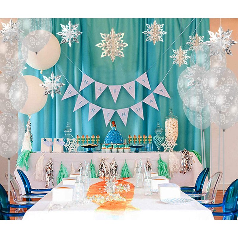 - 50pcs snowflake printed latex balloons per package.