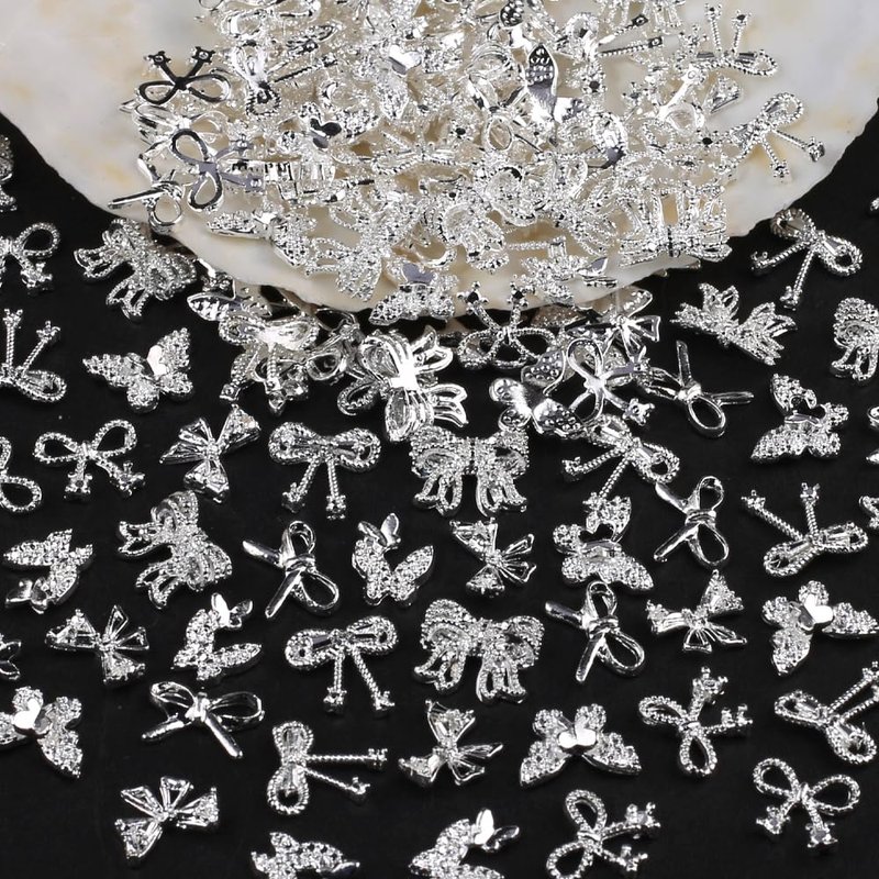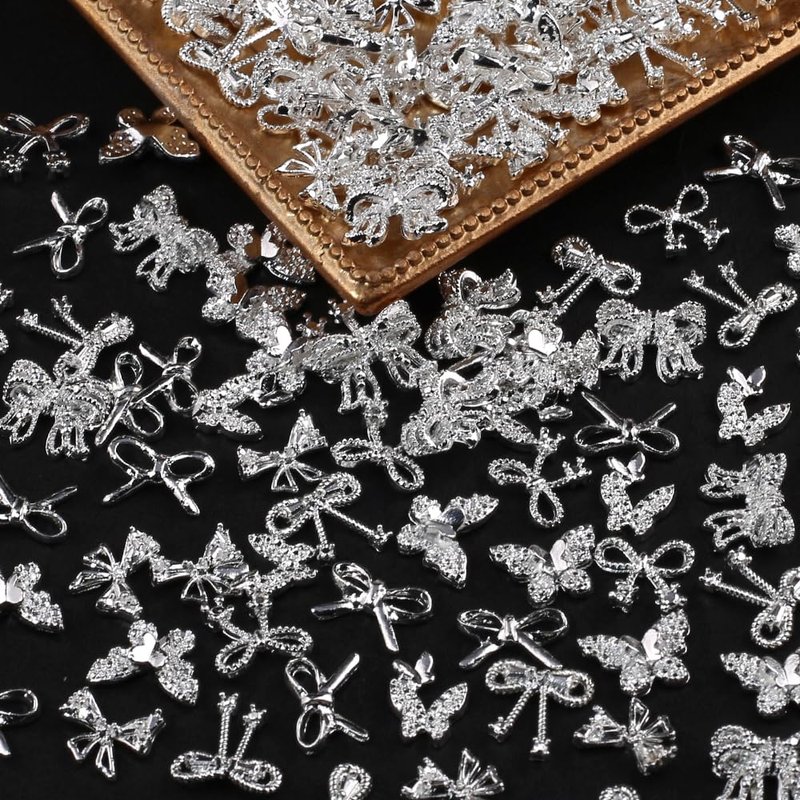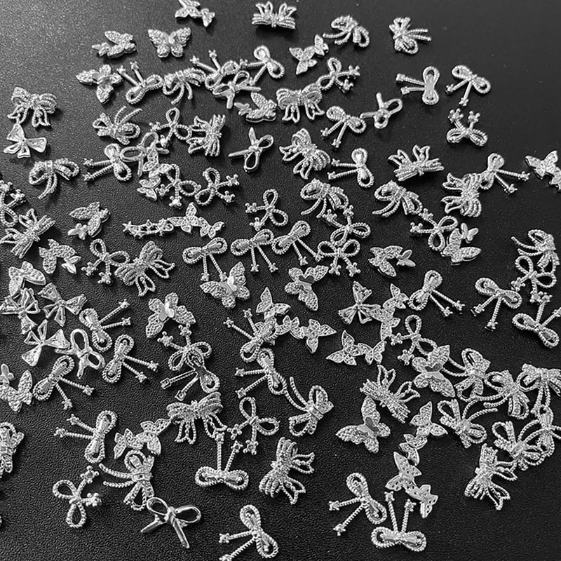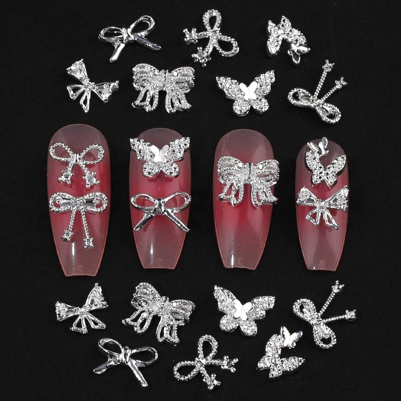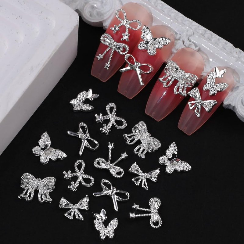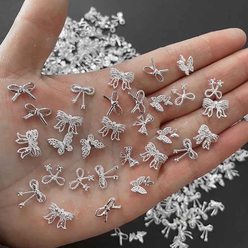 - 【Mix Styles Silver Nail Charms for Acrylic Nails】Our mixed styles nail jewels consist mainly of butterfly nail charms and bow nail charms, these bright silver nail charms are finely crafted and beautifully shaped, making them look shiny and eye-catching, each bow or butterfly nail charm can be used individually or in combination.