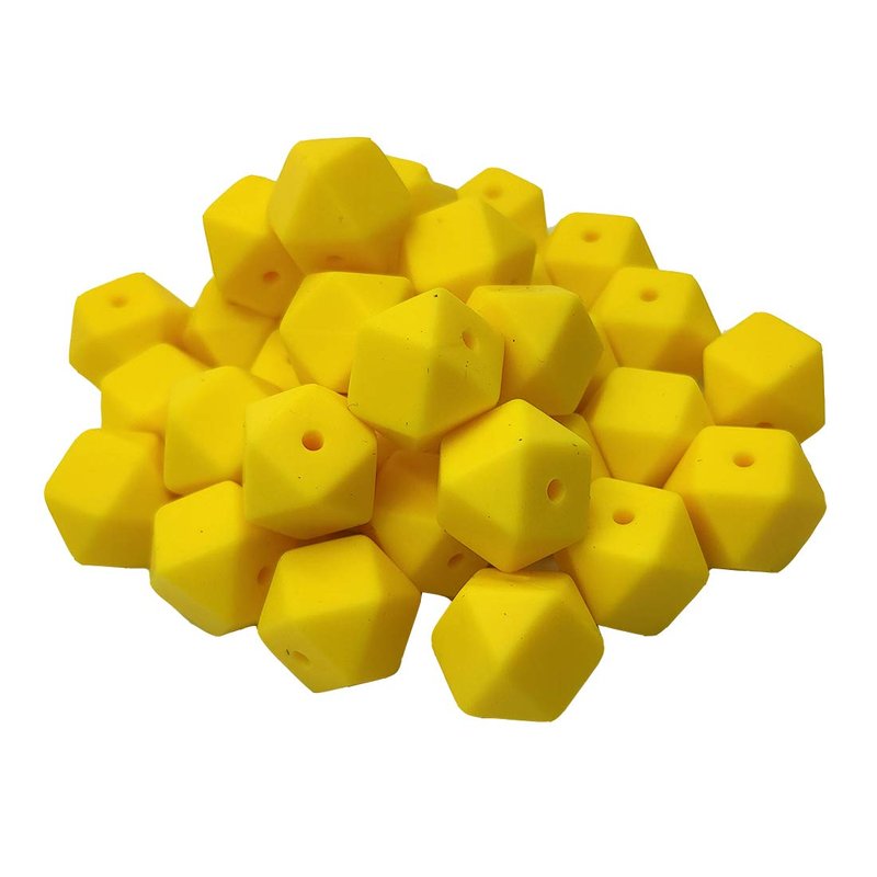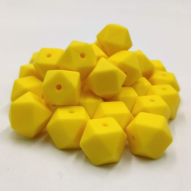 50pcs Bright Yellow Color 14mm Silicone Hexagon Pearl Beads Silicone Geometry Spacer Beads for DIY Beading Mom Jewelry Necklace Making
