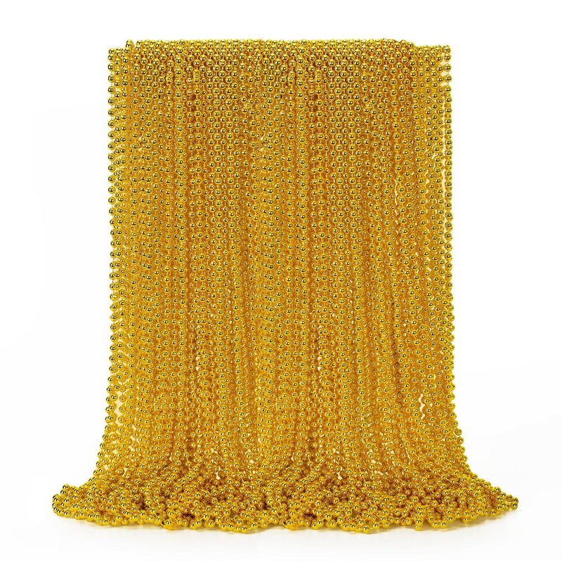 50PCS Mardi Gras Beads, Gold Bead Necklace Stuff, 33" Mardi Gras Christmas Beads Necklace Costume, Festival Parade Throw Accessories for Mardi Gras St Patricks Xmas Wedding Birthday Supplies Decor