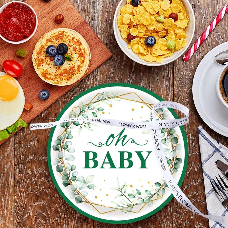 - 【Sage Green Birthday Party Supplies】:You will receive 50 7-inch oh baby party dessert paper plates,the plates printed with:oh baby! green leaves plates have a pattern of eucalyptus leaves and are decorated with gold leaf.super cute for oh baby party themed birthday party decorations,each set can accommodate 50 people guest.