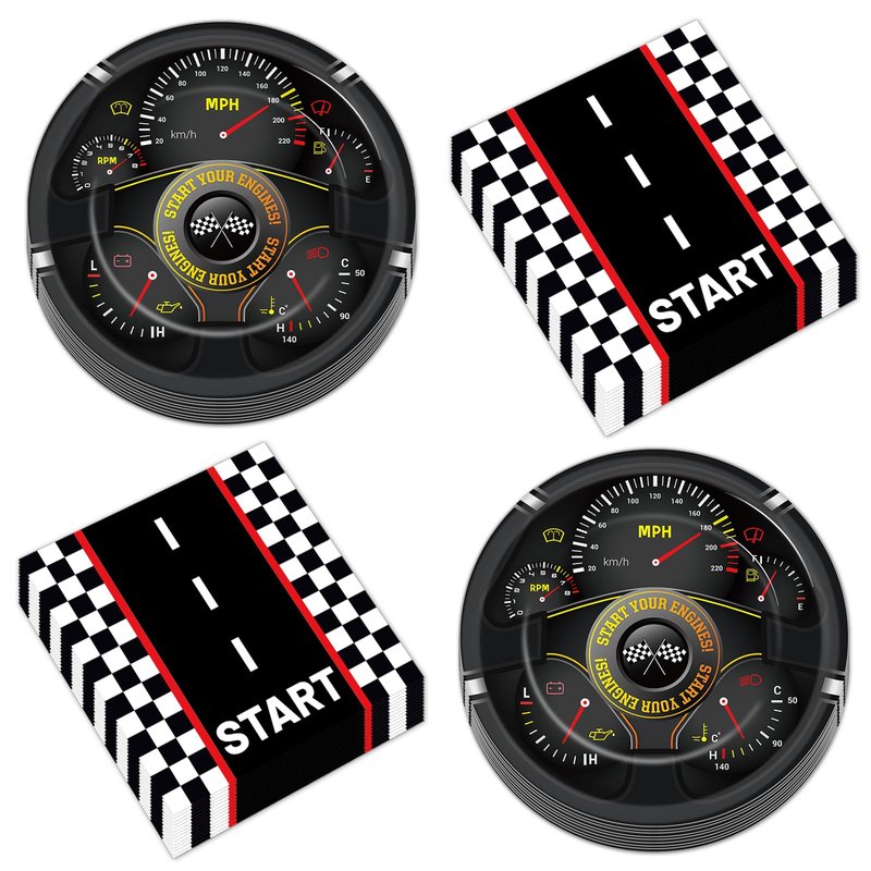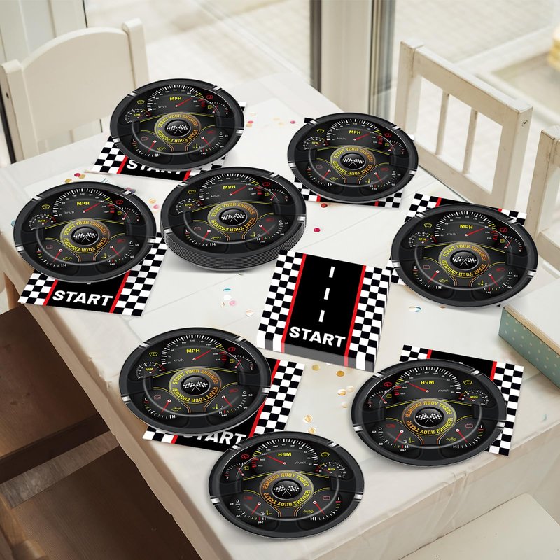 - Race car theme party design: Our race car party plates features exquisite car dashboard pattern. Decorating your birthday party with these delicate race car plates and napkins make your party attract the attention of all guests and add a pleasant atmosphere.