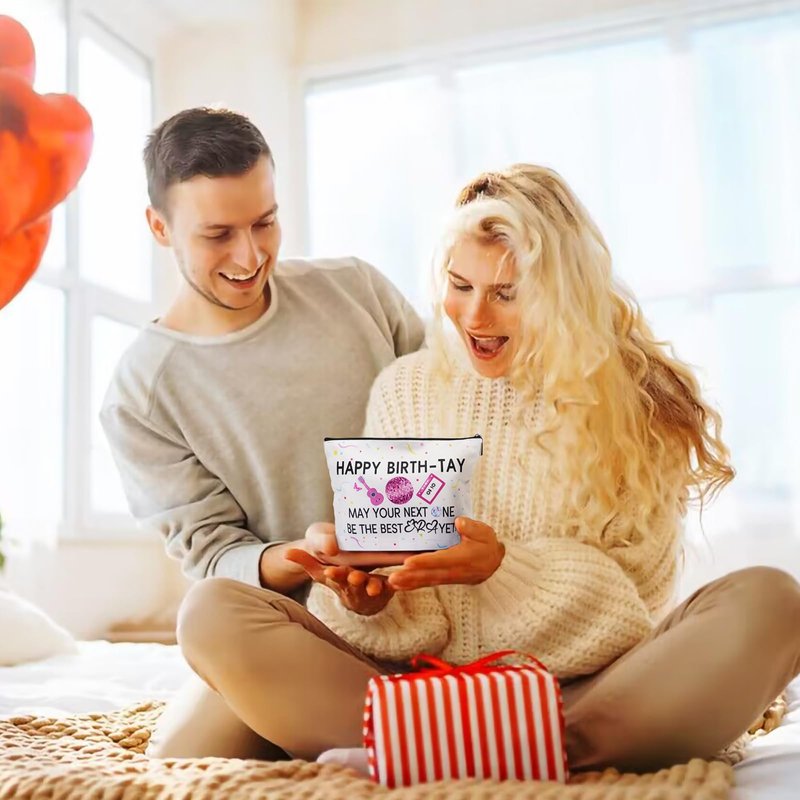 - Stylish Makeup Bag: The birthday set features a happy birth-tay makeup bag, measuring 9.8”W x 6.7”H, travel organizer bag, school stationery bag crafted from waterproof material and linen, this cosmetic bag boasts double-sided color graphics and a smoothly functioning zipper