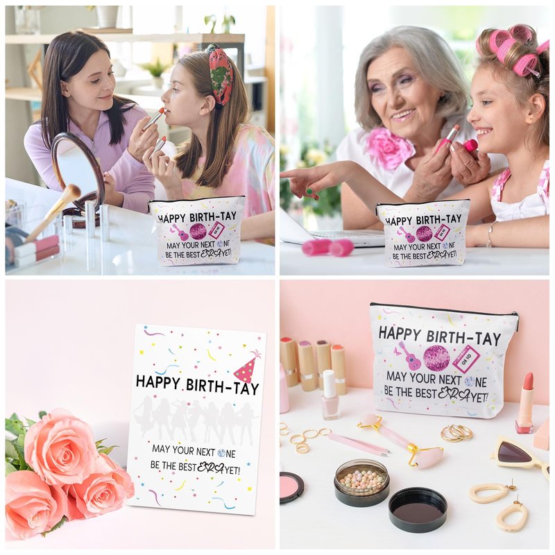 Celebrate your favorite birthday in style with this Birthday Merch Set! The set includes a charming 'Happy Birth-tay' card, a cosmetic bag, perfect for storing makeup essentials or small accessories while on tour or at a concert. But that's not all - it also comes with 50 temporary tattoos featuring designs inspired. These tattoos are a fun way to show your fandom and add a touch of personality to your look. Whether you're attending a birthday party or just want to treat yourself, this set makes for a delightful or souvenir. The cosmetic bag and temporary tattoos are ideal for music fans, concertgoers, and anyone looking to add a touch of whimsy to their birthday celebrations. Embrace your love for music and make this birthday one to remember with the Birthday Merch Set!