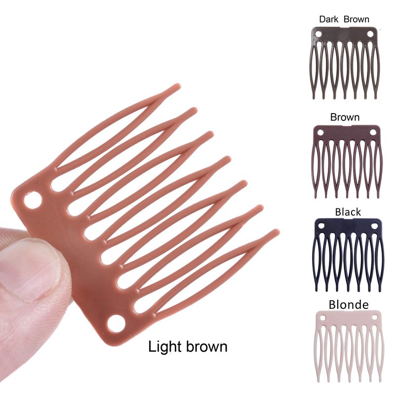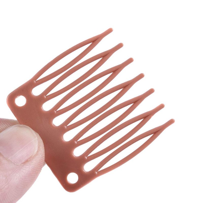 50pcs/Lot Hair Wig Plastic Combs and Clips For Wig Cap Wig Combs for Making Wig(Light Brown)