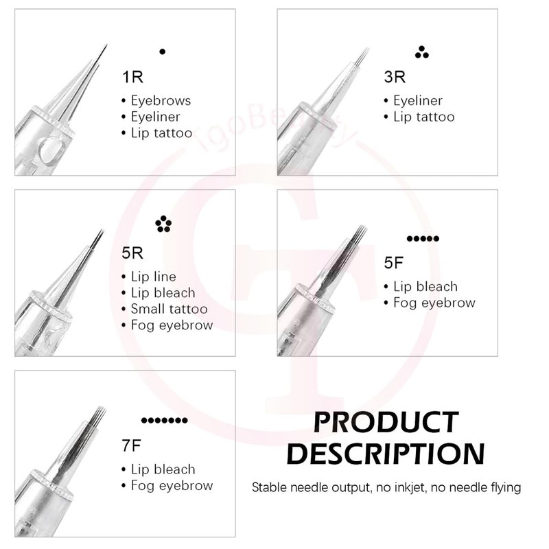 - Disposable needle cartridges are for microblading permanent makeup pen machines to make eyebrow tattoo.