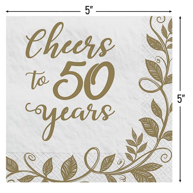 "50th Anniversary" Beverage Napkins 16 Ct. 5" x 5"