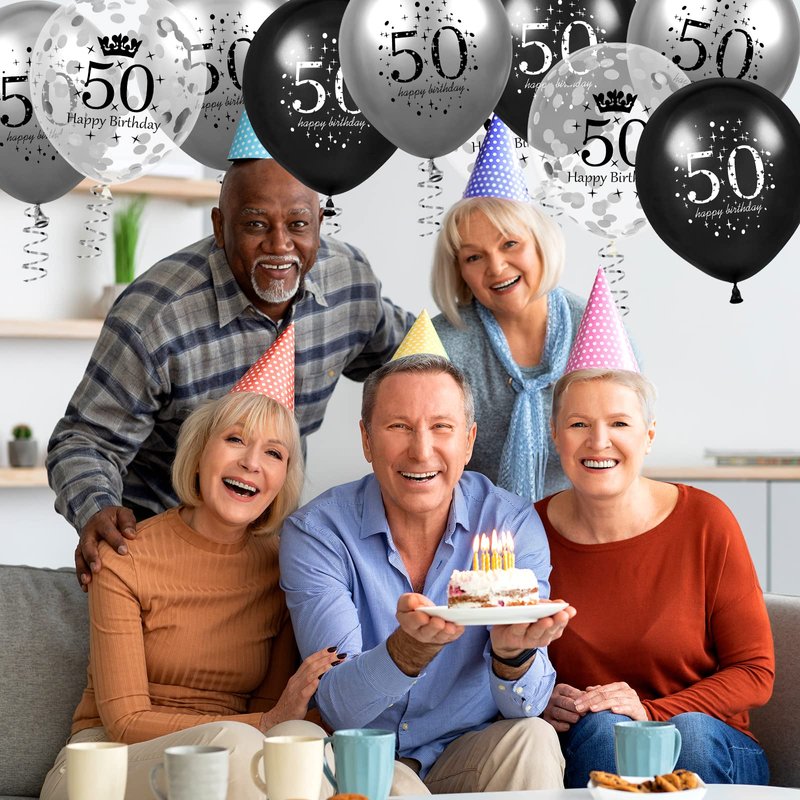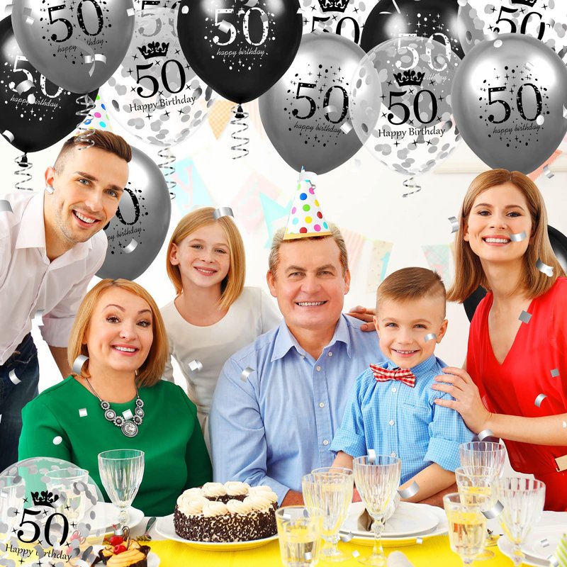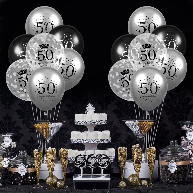 50th happy birthday balloons,they are black and silver.They can use in 15th birthday party for men and women.You can use them with other birthday party accessories and decorations, bringing a wonderful 50th birthday party for men or women