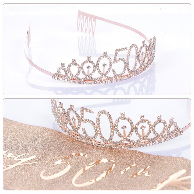 50th Birthday Sash and Tiara Set Rose Gold Birthday Sash Crown Birthday Party Favors Supplies for Birthday Party