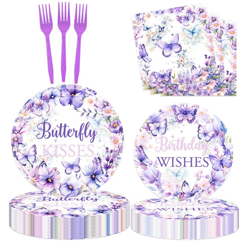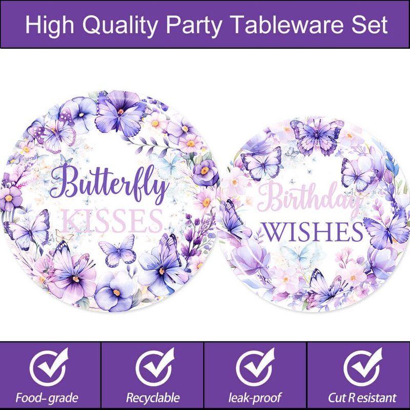- Many Occasions: Butterfly kisses birthday wishes birthday party tableware is great to decorate butterfly girls birthday party, butterfly 1st birthday party, butterfly baby shower party, butterfly gender reveal party, butterfly birthday party, etc