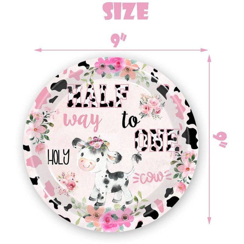 Holy cow girls half birthday party tableware is great to decorate farm animals half birthday party, holy cow baby shower party, Girls six months birthday party, Moo Moo half way to first party, etc.